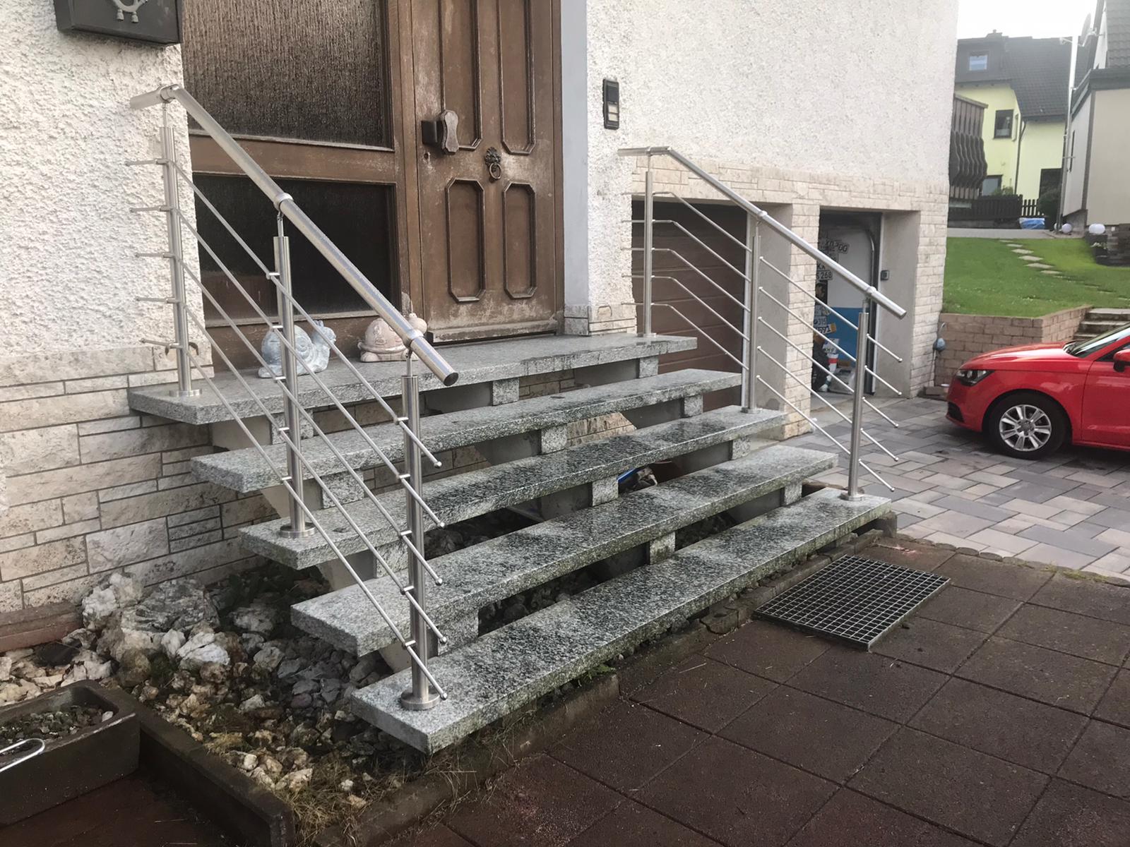 Mit unseren Bausätzen können Sie Ihr Geländer auf der Treppe (aufgesetzt) oder seitlich versetzt (vorgesetzt) montieren. Die Wahl liegt ganz bei Ihnen. Zur Anwendung kommt ausschließlich Edelstahl V2A, Mat. 1.4301, Mat. 1.4305 und AISI 304, welches bei richtiger Pflege eine hohe Korrosionsbeständigkeit aufweist. Neuer Text